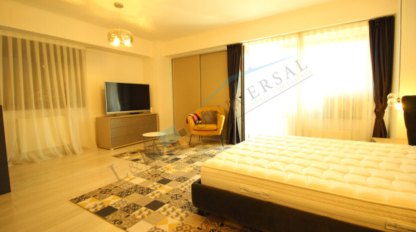 Studioul este complet mobilat si utilat, incluzand bucataria mobilata si echipata cu electrocasnice (masina de spalat vase, plita, cuptor, hota, frigider), asa cum se poate observa din fotografiile de prezentare, viitorul chirias aducand cu sine doar lucrurile personale