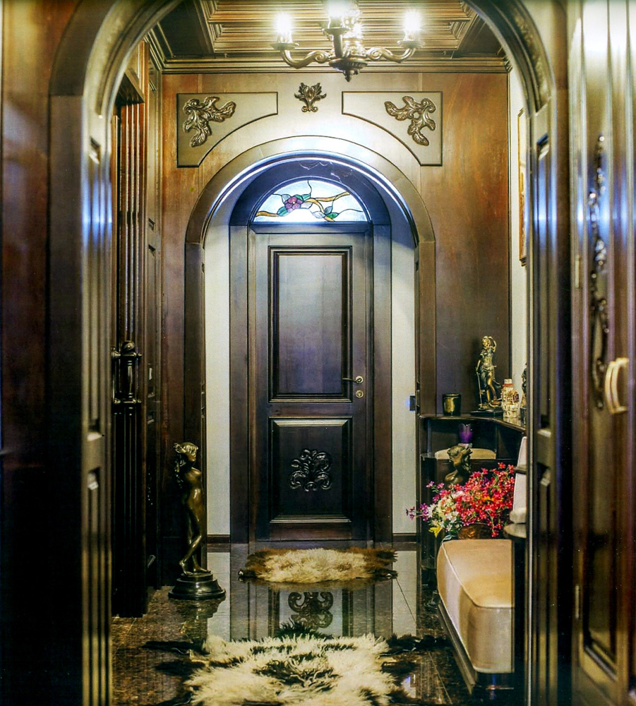 Un element definitoriu al acestui spatiu il reprezinta tratarea peretilor cu stucco venetian. Acesta ofera impresia unei suprafete de marmura si aminteste de stilul decorativ venetian folosit in palatele urbane italiene.