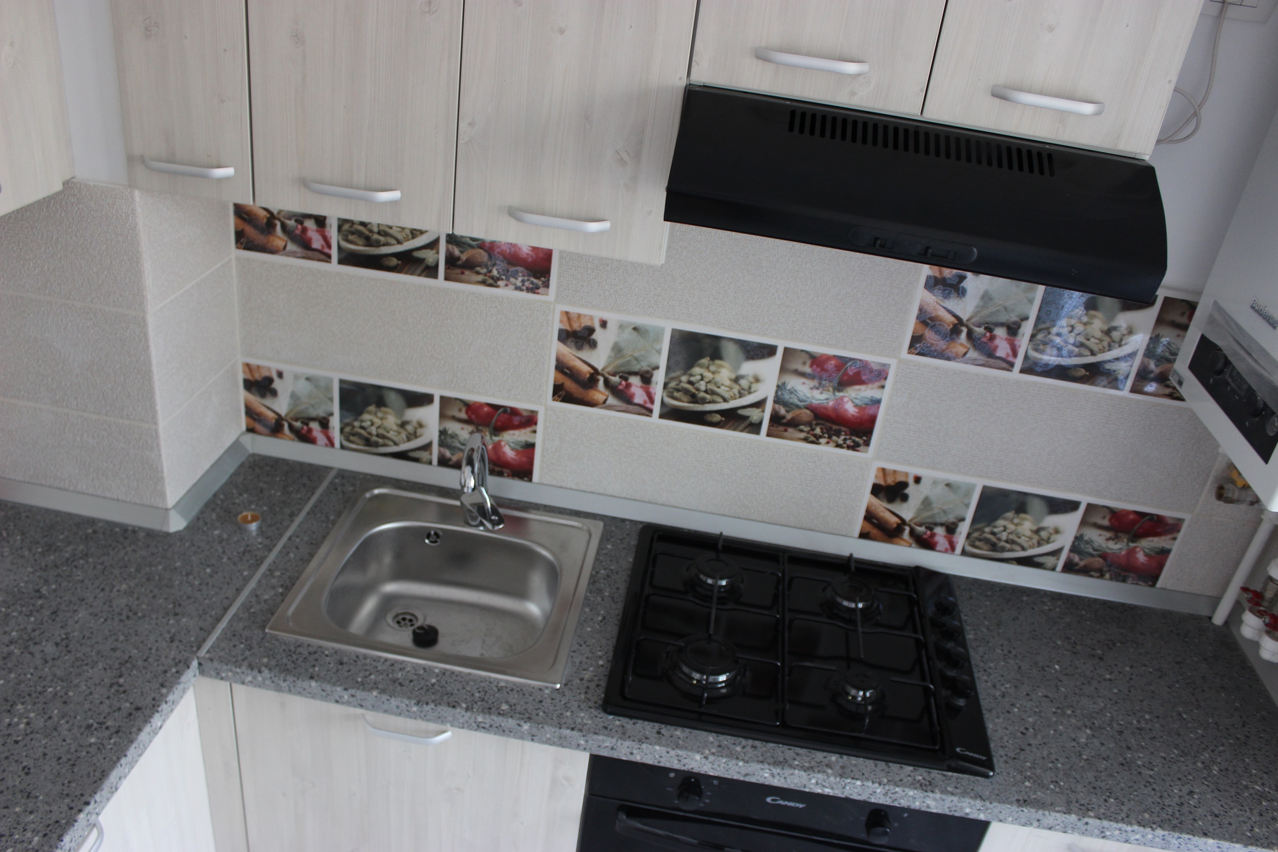 -pereti placati cu faianta in bucatarie si cele 2 grupuri sanitare
