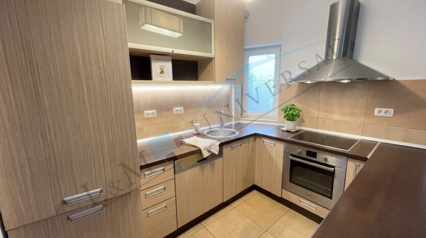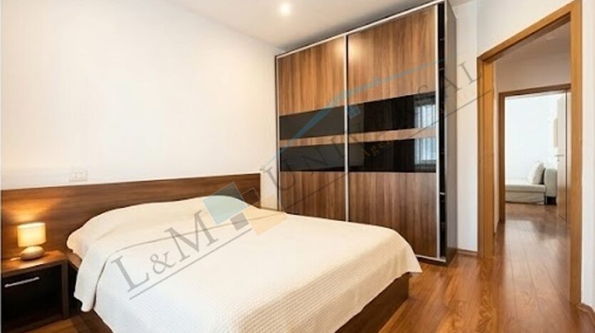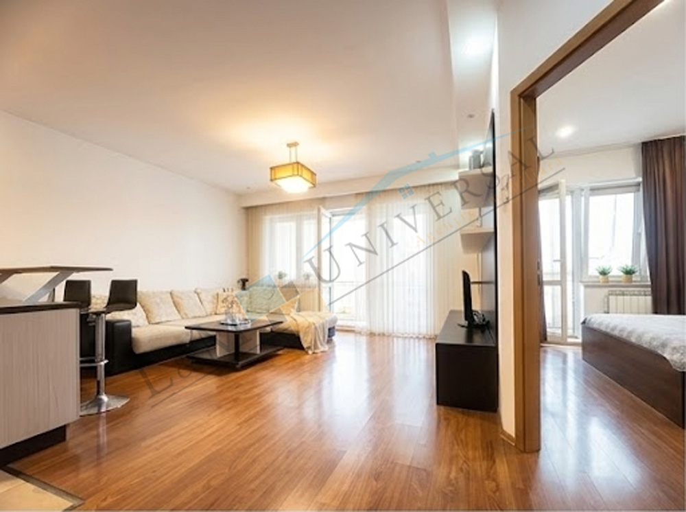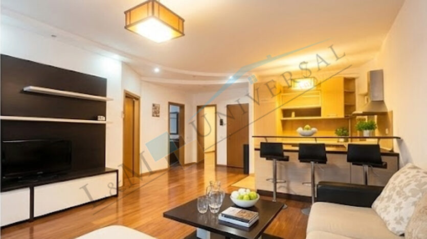 Apartamentul beneficiaza de finisaje de calitate, pardoseli placate cu gresie in bucatarie si cele baie, pardoseli placate cu parchet in living, holuri si cele doua dormitoare, tamplarie pvc cu geam termopan, placi ceramice intre blatul de lucru si dulapul superior in bucatarie, pereti placati cu placi ceramice in baie, usi interior din lemn, instalatii sanitare si electrice noi, usa metalica la intrarea in apartament, o unitate de aer conditionat.