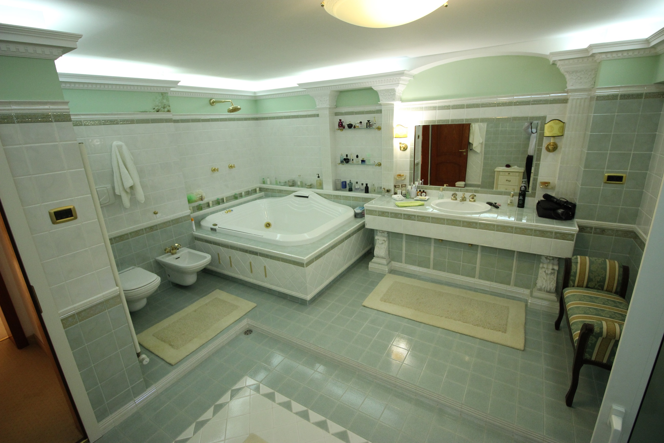 Baia principală a reiesit din unirea băii initiale cu un dormitor alăturat. Este placată cu faiantă Versace si cadă dublă cu jacuzzi.